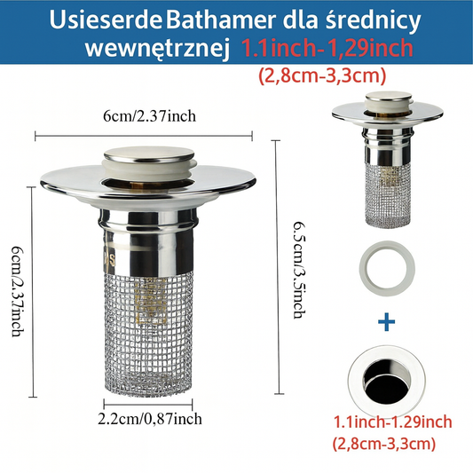 Zatyczka odpływu 2-w-1 z sitkiem na włosy do umywalki