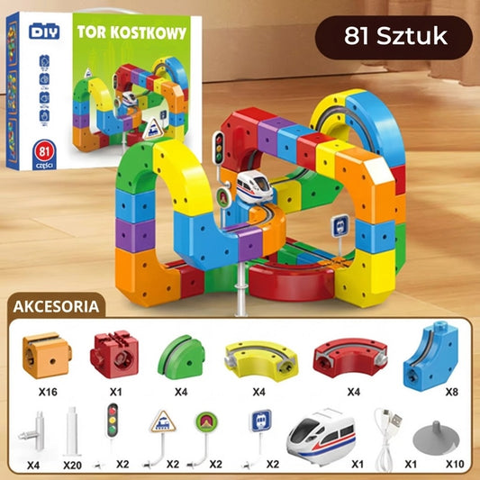 DIY tor kolejowy z puzzli – edukacyjny zestaw klocków