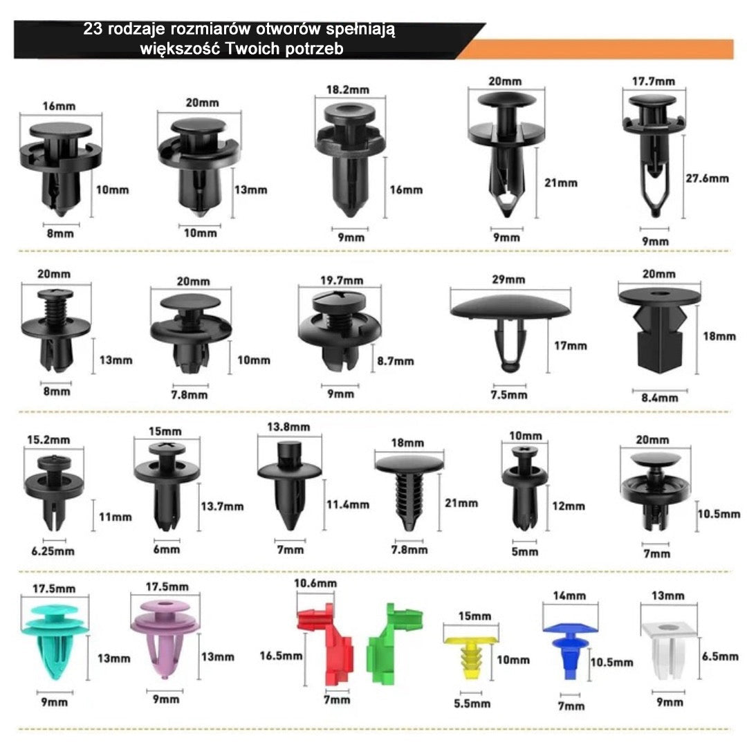 W zestawie znajdziesz profesjonalny ściągacz do spinek, który pozwala bezpiecznie usuwać stare elementy bez ryzyka uszkodzenia lakieru czy karoserii. Koniec z używaniem śrubokrętów, które pozostawiają rysy. Dzięki temu narzędziu Twój samochód pozostaje w idealnym stanie – czy to przy naprawie zderzaków, tapicerki drzwi czy innych elementów nadwozia.