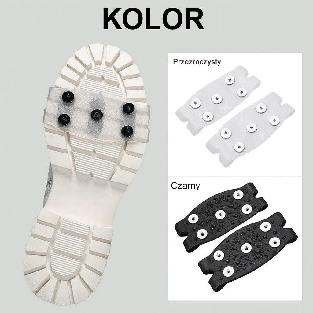 Zwiększ swoje bezpieczeństwo zimą dzięki tym wyjątkowym nakładkom antypoślizgowym. Wyposażone w pięć precyzyjnie rozmieszczonych kolców, zapewniają doskonałą przyczepność nawet na najbardziej śliskim lodzie i ubitym śniegu. Kolce pewnie wbijają się w podłoże, gwarantując stabilny krok i skuteczną ochronę przed poślizgnięciem – to niezawodne i proste rozwiązanie dla bezpiecznego poruszania się w zimowych warunkach.