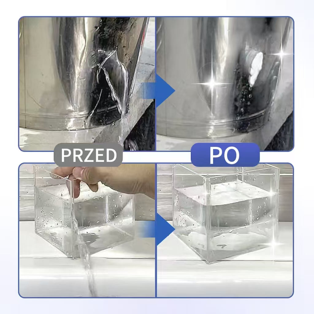 Po utwardzeniu klej tworzy nadzwyczajnie mocną, a jednocześnie elastyczną spoinę, która skutecznie absorbuje naprężenia materiału i zmiany ciśnienia w wodzie. Dzięki tej elastyczności klej nie pęka ani nie odkleja się nawet w najtrudniejszych warunkach, zapewniając niezawodne i długotrwałe efekty naprawy.