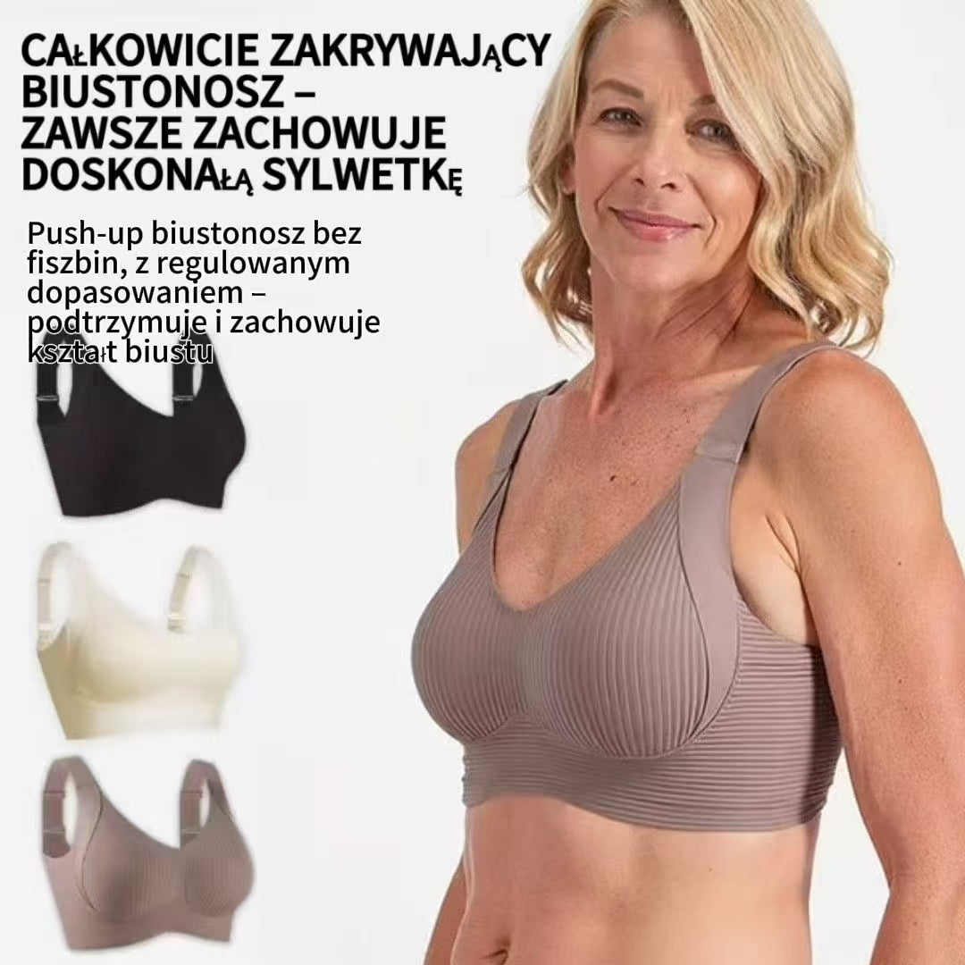 Masz dość niewygodnych biustonoszy z twardymi fiszbinami? Biustonosz Push-Up bez fiszbín to idealne połączenie wygody, podtrzymania i modelowania. Dzięki bezszwowej konstrukcji i czterorzędowej haftce perfekcyjnie dopasowuje się do ciała – idealny na co dzień, również dla pełniejszego biustu.