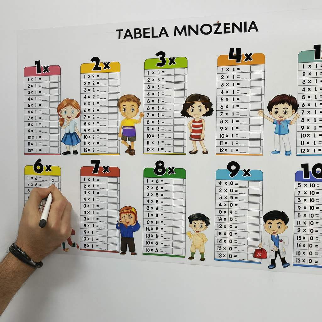 Zamień naukę tabliczki mnożenia w pełną radości, interaktywną zabawę! Ta zmazywalna tablica do nauki mnożenia pomaga dzieciom w praktyczny sposób ćwiczyć i utrwalać umiejętności matematyczne. Dzięki możliwości łatwego pisania i ścierania, dzieci mogą wielokrotnie powtarzać zadania, poprawiać błędy i szybciej opanować zasady mnożenia. Nauka staje się efektywna, ciekawa i motywująca.